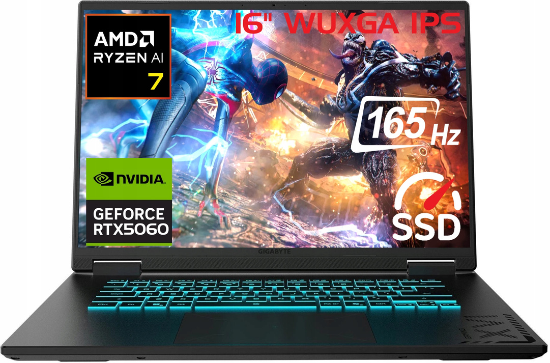 Gamingowy Gigabyte A16 Ryzen 7 260 / 16" WUXGA 165Hz / 16GB DDR5 5600MHz / 512GB SSD M.2 PCie / NVIDIA GeForce RTX 5060 8G GDDR7 / Windows 11 Home