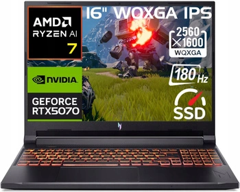 Zaprezentuj swój potencjał gamingowy dzięki laptopowi Nitro V16 od ACER. Zasilany procesorem AMD Ryzen 7 260, ten gamingowy mocarz umożliwia osiągnięcie niesamowitej wydajności w każdej bitwie. Z grafiką NVIDIA GeForce RTX 5070, błyskawiczną pamięcią masową SSD PCIe NVMe M.2 Gen4 i pamięcią RAM DDR5, ten laptop podniesie Twoje doznania gamingowe na zupełnie nowy poziom. Zdobądź przewagę nad przeciwnikiem dzięki niezawodnemu sprzętowi, który dostarczy Ci niezapomnianych chwil rozgrywki.